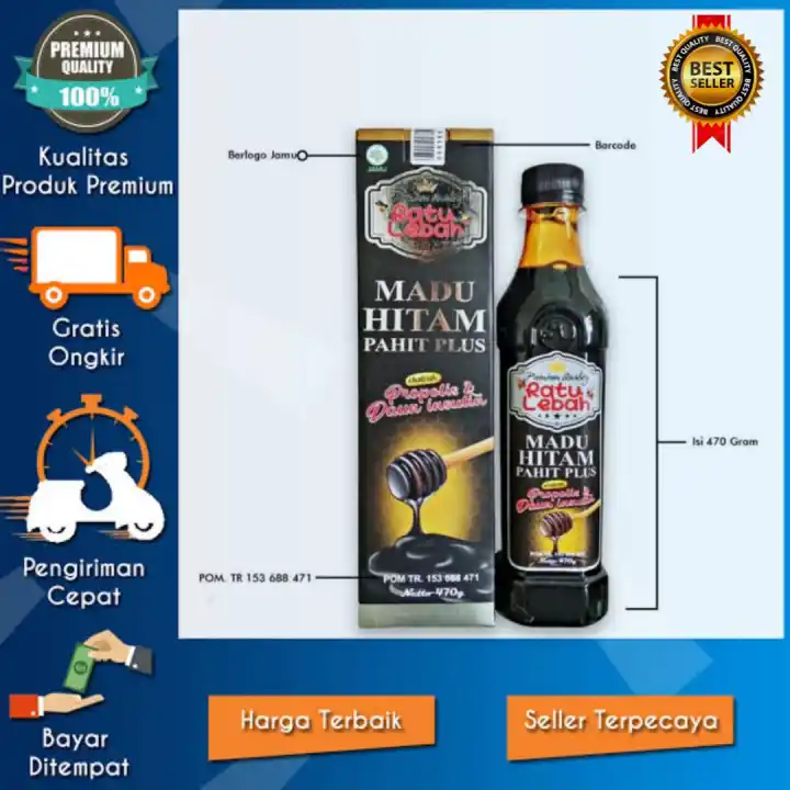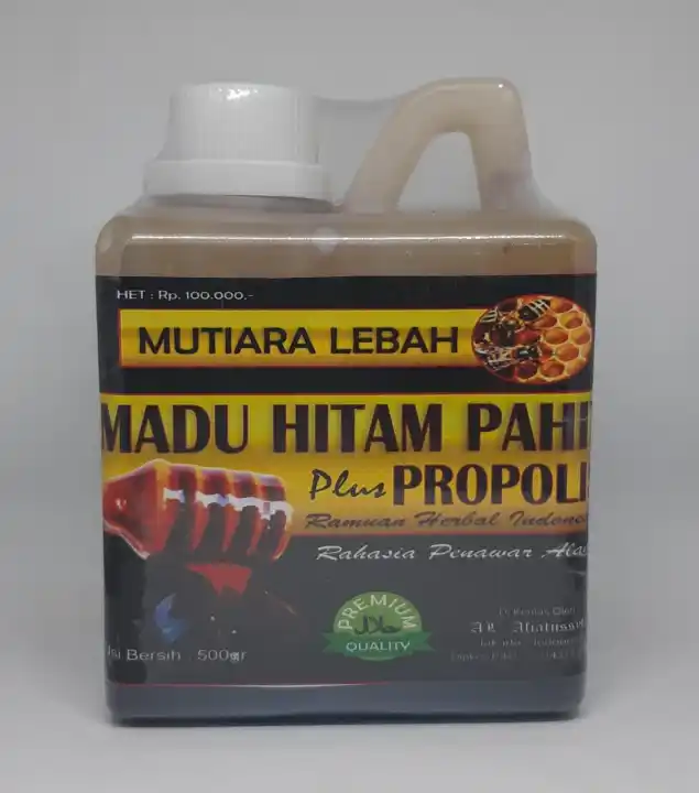 183613471 netto 470 g madu hitam pahit yang marak dan laris karena berbagai macam khasiatnya sering dibilang sirup madu atau madu olahan campuran dengan sambiloto brotowali dan macam2 herbal yang pahit rasanya tapi memiliki khasiat yang luar biasa untuk melengkapi kualitasnya ditambahkan propolis agar madu hitam. Manfaat madu hitam dalam bidang kesehatan dan kecantikan tentu madu tidak diragukan lagi. Madu hitam pahit propolis raja lebah kemasan baru madu pahit pro pom tr.