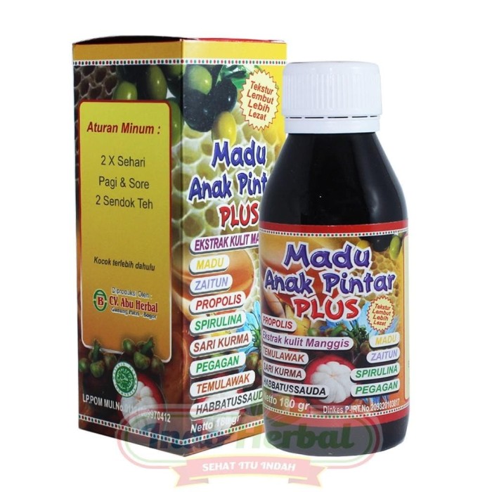 Jual madu anak pintar plusmadumadu anakkesehatan anakmadu original dengan harga rp20000 dari toko online kios herbal sinta varia kota tangerang. Madu anak pintar plus mengandung ektrak kulit manggis madu minyak zaitun propolis spirulina sari kurma pegagan temulawak dan habbatus sauda jinten hitam. Cari produk madu lainnya di tokopedia.