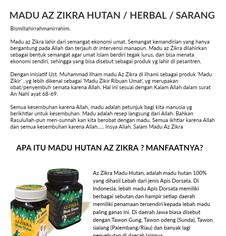 Jual Madu Az Zikra Di Lapak Depot Herbal Klaten Bukalapak