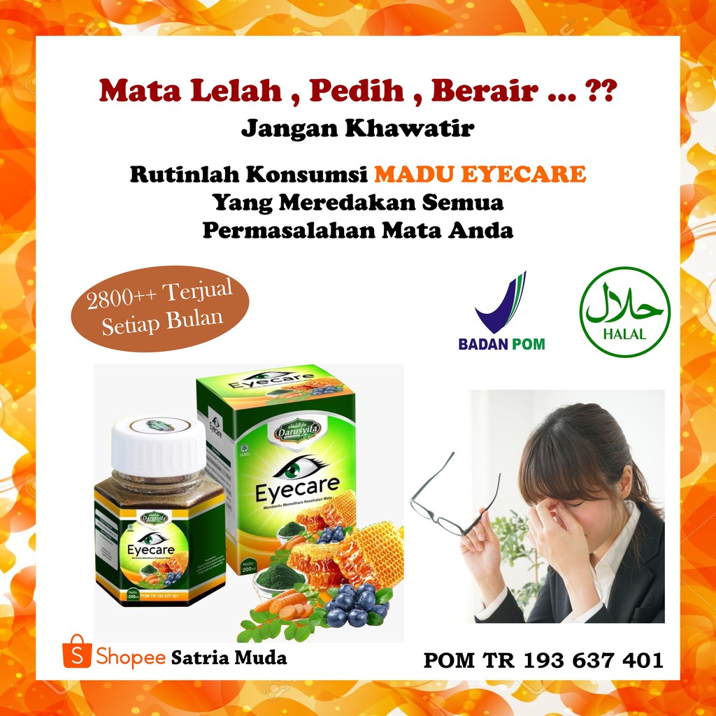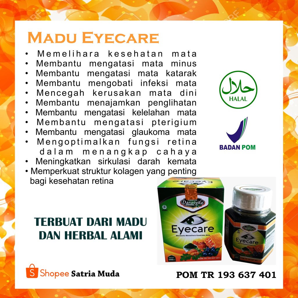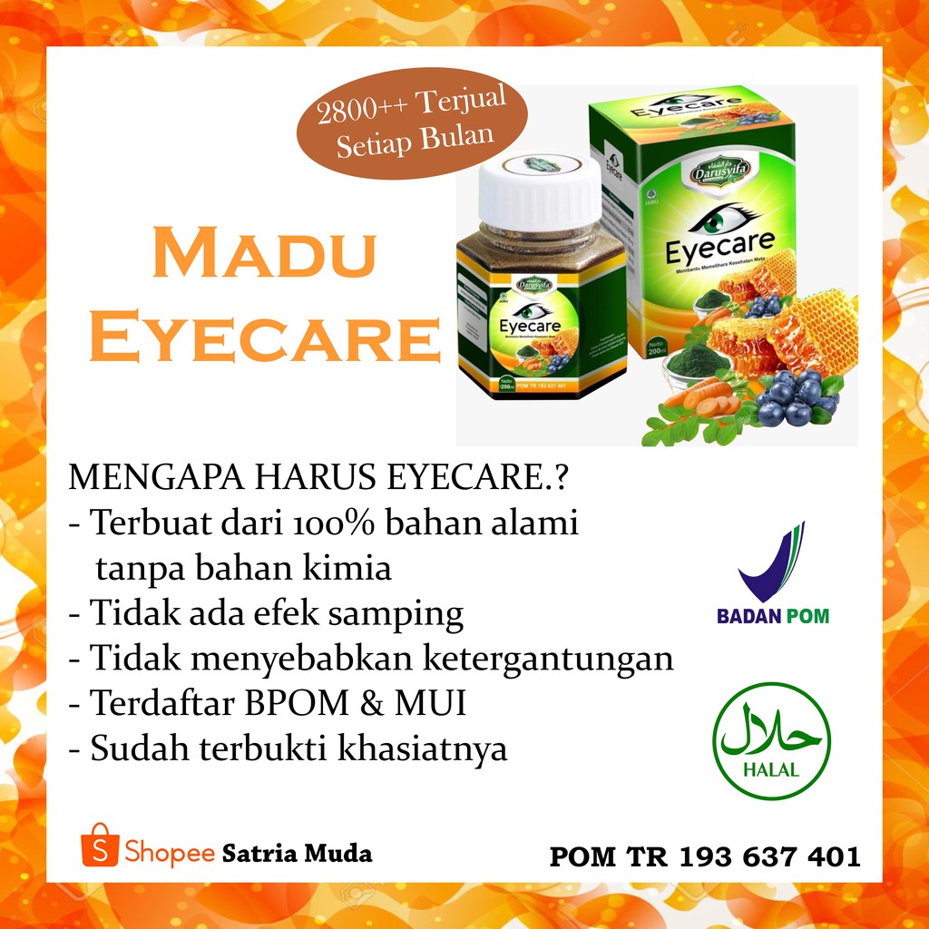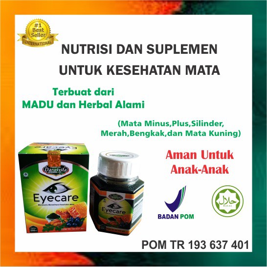 100 bahan alami tanpa bahan kimia tidak menyebabkan ketergantungan terdaftar bpom mui sudah terbukti khasiatnya miliki sekarang di era. Madu eyecare obat mata herbal gangguan penglihatan berupa mata minus semakin mengintai anak anak sampai remaja di era digital. Madu eyecare darusyifa memiluki komposisi kompleks dari vitamin dan mineral yang dipercaya sebagai unsur penting dalam menutrisi kesehatan mata.