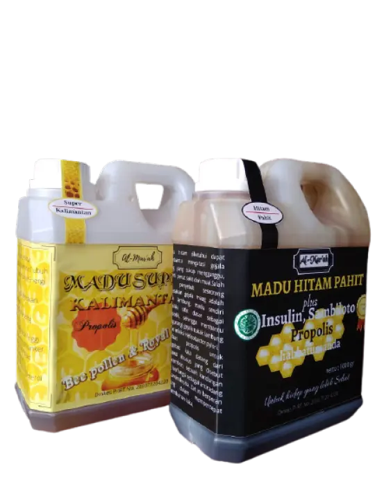 1 Paket Madu Kalimantan 1 Kg Dan Madu Hitam Pahit 1 Kg Al Mar Ah Di Lengkapi Dengan Propolis Lazada Indonesia