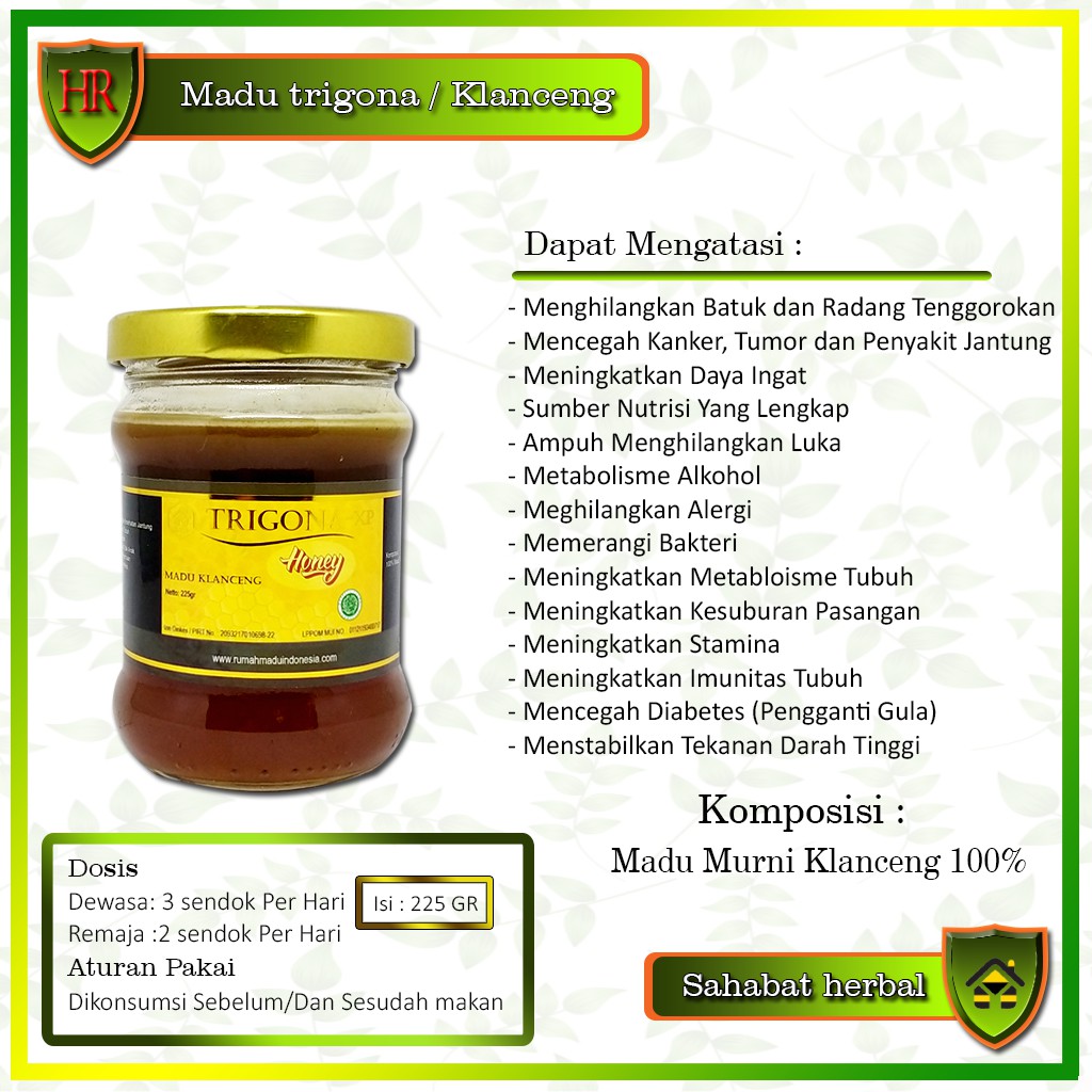 Manfaat madu klanceng untuk kesehatan tubuh. Madu klanceng memiliki senyawa antioksidan bernama protacatechuic acid pca 4 hydroxyphenylacetic acid dan serumen. Kandungan tersebut membuat madu menjadi sumber energi yang baik. Merangkum dari healthline secara nutrisi satu sendok makan madu mengandung 64 kalori dan 17 gram gula termasuk fruktosa glukosa maltosa dan sukrosa.