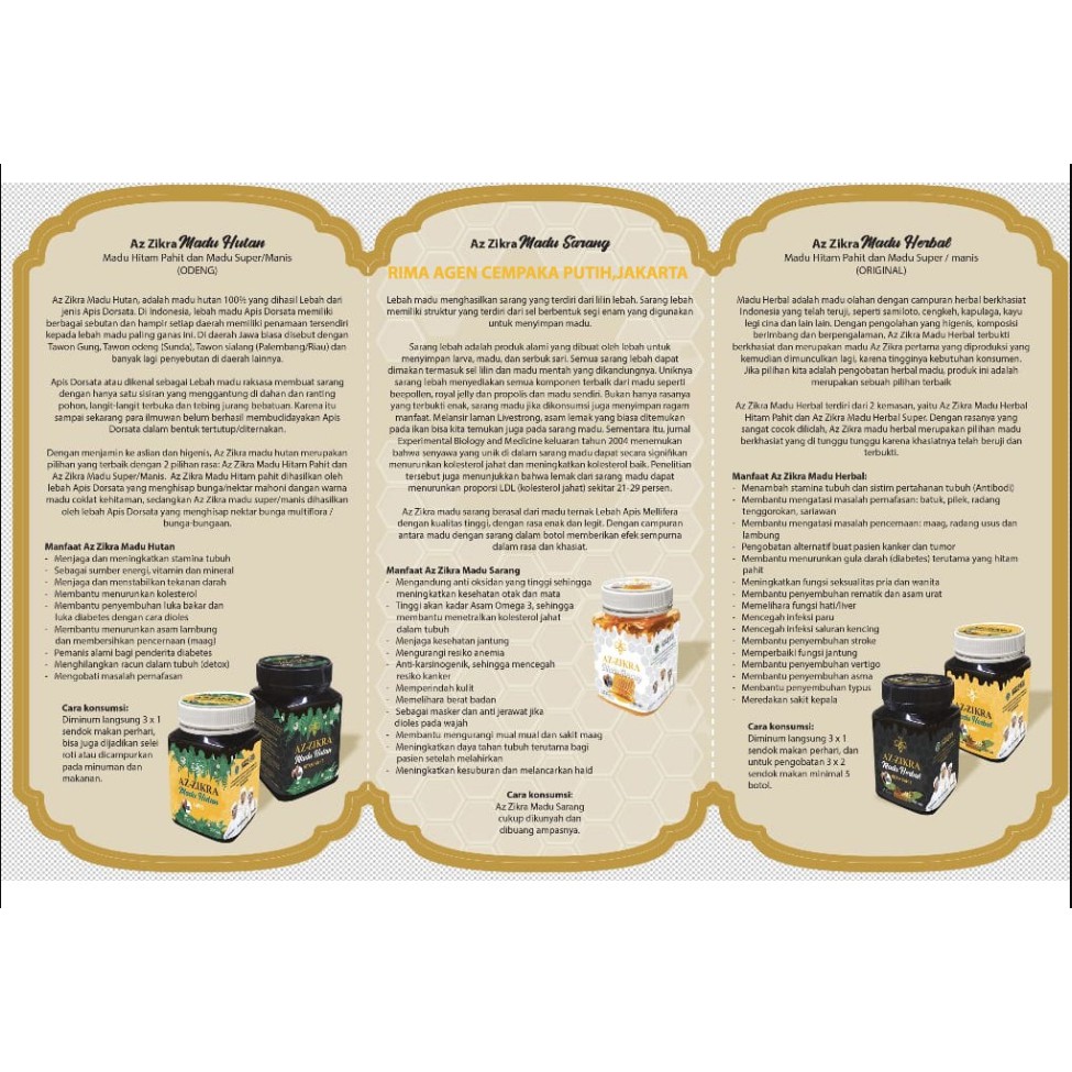 Asli 100 Brosur Madu Hitam Pahit Super Az Zikra Azzikra Madu Herbal Madu Hutan Shopee Indonesia