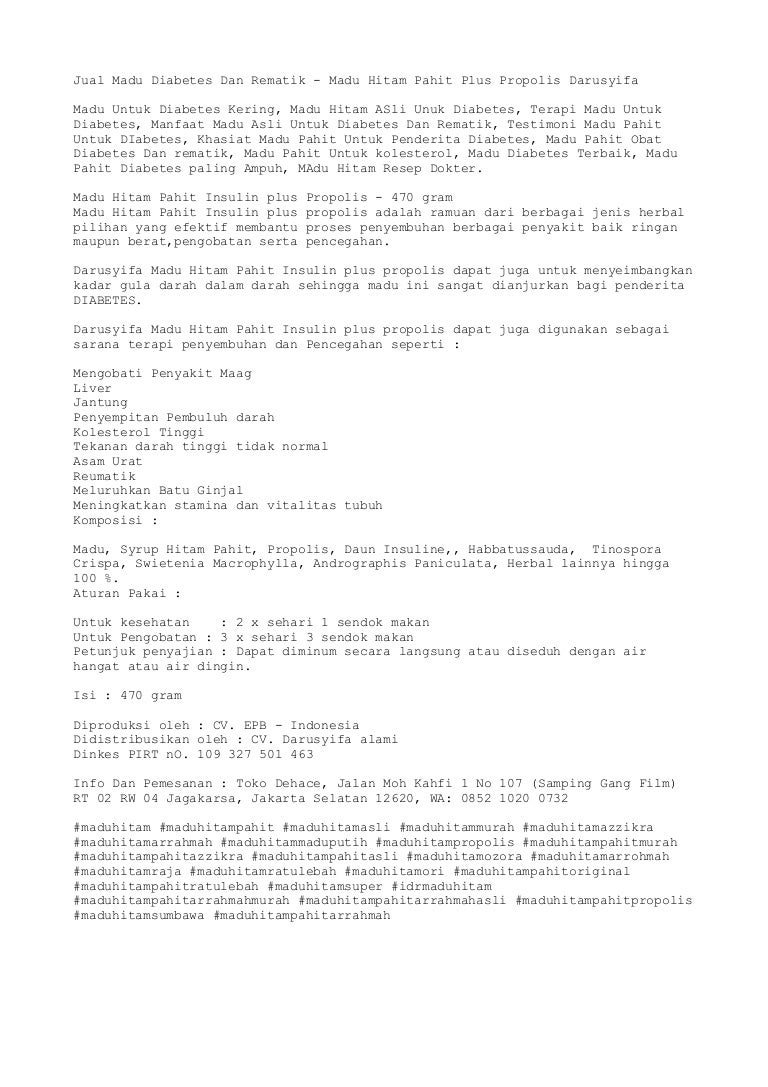 Madu Hitam Pahit Insulin Darusyifa Plus Propolis Dan Sambiloto Surabaya Jualo